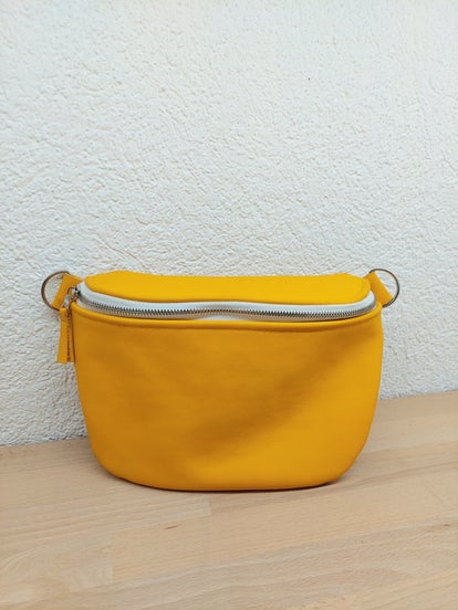 Banane en cuir véritable, doublée avec poche intérieur. Sacoche durable et pratique.